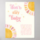 Add an extra dose of fun to your baby shower with our Sunshine "Don't Say Baby" Game Sign! Featuring a boho design with a watercolor sun, retro typography, and star accents, all set against a soft vintage white background. The bright and girly colour scheme of pink, peach, and yellow sets the perfect tone for celebrating your little ray of sunshine on the way. Engage your guests in an entertaining game where they can't say the word "baby" throughout the event.
