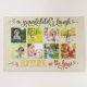 Create your own custom photo jigsaw puzzle with 8 of your favourite photos. The design features the quote "a grandchild's laugh is sunshine in the house". It is lettered in ornate calligraphy with love hearts and an ombre colour palette of olive green through sunny yellow and burnt orange. The photo template is set up ready for you to add your eight pictures which are arranged in a grid style photo collage. Your photos are displayed in square format, so most landscape or portrait photos will work (depending on the focus point) or you can upload square instagram pictures. Please browse our store for more photo puzzles and grandparent gifts.