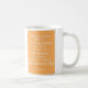 This mug features a design by artist Anne Harwell. Orange background with white text that reads " Those who bring sunshine to the lives of others cannot keep it from themselves".