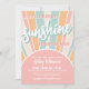Retro Sunburst A Little Ray Of Sunshine Baby Shower Invitation for Baby Girl Pink Orange Teal Blue.