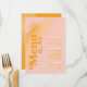This fun wedding menu card is part of a vibrant wedding suite featuring a colour palette as bright as a sunny day, ranging from peach pink to marigold orange. Add your menu selections, initials and wedding date in the provided template. The colourful design is complemented by bold typography in a modern, retro-inspired style, making it the perfect choice for couples looking to add a touch of sunshine to their special day. Search ID1048 to see other pieces and colour choices for this set.