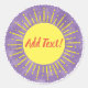 Sunshine watercolor template for baby shower. Custom stickers for party decor. Yellow sun in purple sky. Add text and image to customise. Theme: Here Comes The Son.