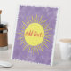 Sunshine watercolor template for baby shower. Custom pedestal signs for party decor. Yellow sun in purple sky. Add text and image to customise. Theme: Here Comes The Son.