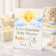 Bright, cheerful “Little Sunshine” watercolor sign featuring a smiling sun peeking through soft, fluffy blue clouds. Warm yellow and sky-blue palette paired with a mixed serif + hand-script typography gives a modern-vintage, gender-neutral look. Perfect for baby-shower display stations like the book table, welcome area, or tabletop easel — optimised for U.S. search terms and display-ready printing.