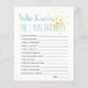 This cute "who knows the 1 year old best?" 1st/first birthday party game sheet features a white background with the smiling sun in watercolor. The reverse side features a white background with yellow stripes in watercolor. Personalise for your needs. You can find more matching products at my store.