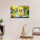 Sunshine yellow fluffy chicken blue - eyed bird poster
