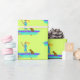 Paddleboarding gift wrapping paper with girl on a board with her dog design. Pattern is printed over tropical chartreuse colour. Wrap gifts for teenage daughter or friend. This fun and sporty paper comes in a variety of lengths.