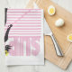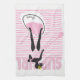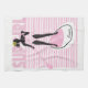 A cute stand up paddle board kitchen towel design just for girls. A silhouette of a girl on a paddleboard against a background of pink stripes and wavy lines is just right for any water girl who loves the sport of paddling. Customise it – add a name! Choose a background colour to suit!