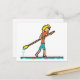 SUP Stand Up Paddleboard design shows a relaxed expert standing on a paddle board using a pole length paddle to propel it over the perfect blue water. Paddleboarding with style!
