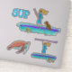 Fun SUP shaped stickers with my illustrated designs. Tropical themed stand-up paddleboarding girl with her dog and a big sea turtle. Artistic stickers can be used for a teen girl's summer birthday, or summer water party with friends. Or add the stickers to book covers, school folders, or gift wrap.