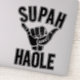 SUPAH Haole Shaka Hawaii. In Hawaiian, Haole is a person who is not a native Hawaiian. Later evolving into uses directed towards European post Captain Cook's arrival in 1778 and evolving in Pidgin especially relating to a white person.