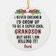 Celebrate your super cool Grandson with this adorable and funny ornament! Featuring the quote “I never dreamed I’d grow up to be a super cool Grandson but here I am killing it!”, this custom keepsake is the perfect gift from proud grandparents. Ideal for Christmas trees, holiday decor, or year-round display, this ornament adds a personal touch with a Photo customisation. A heartfelt and humourous surprise that every Grandson will love!