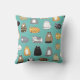 Super cute adorably round kawaii style cat loafs scatter across this design. This pillow has all the felines – red, gray and brown tabbies, calicos, siamese points, spots, and solids in white, black, gray and buff! It is the purrfect pattern for any cat lover, as the aqua blue background color can be changed to match any taste by clicking the Edit Design option!