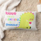 This pillow is sure to brighten your day with this cute loveable dinosaur. The quote says "rawr means i love you in dinosaur" TOO CUTE