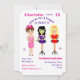 Super cute birthday party invitation for young teenage girls having a pamper party showing girls having hair, makeup and beauty treatments on salon chairs, a fun bright colourful invite which is easy to customise with your personal name and party details at no extra cost.