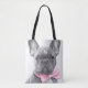 Super cute Sketch Frenchie puppy with pink bow Tote Bag