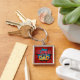 Super Dad Moustache Modern Grunge Keychains features the text "Super Dad" in modern red and yellow typography on a blue and red grunge background accented with a moustache. Gifts for Dad for birthday, Father's Day, Christmas, holidays and more. Created by Evco Studio www.zazzle.com/store/evcostudio