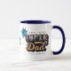 Every super dad needs their own unique mug. A fun gift for your super dad! The design features "Super dad" in a fun stylish comic book style typographic design in navy blue, light blue, and yellow with a halftone comic book pattern design. Customise with Dad's monogram and your own optional text. Customise with your own photos within the letters of the word "Super" It creates a truly unique personalised gift for Dad. Perfect gift for Father's Day, birthdays, anniversaries, and more! Design by Moodthology Papery
