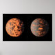 This artists impression of super-Earth 55 Cancri e shows a hot partially-molten surface of the planet before and after possible volcanic activity on the day side.