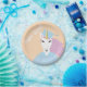 Kid’s graduation paper plates showing a cartoon unicorn in a blue graduation cap and gown. These magical creature plates are a great addition to a Pre-School, Kindergarten, or Elementary school graduation celebration.