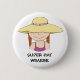 Chic happy smile big sun hat button, ideal to encourage girls to keep a hat on when in the hot sun. Reads Super hat wearer or customise with your own phrase or name. Uniquely designed by Sarah Trett.
