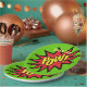 These colourful fun paper plates are perfect for any Super Hero or Super Hero fan! They are featured in bright lime green with the word POW! in yellow surrounded by a red burst. Your name is featured in yellow along the top of the burst when added in the box provided on your screen. Select Customise to change the background colour.