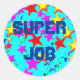 Round sticker has colourful stars with "Super Job" in the centre of the sticker. This design can be customised and makes a fun gift too!