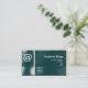 An attractive business card in dark green with an abstract texture perhaps a little like the view one might see out of a train wndow. Ready to be customised. You can replace the @ symbol with a logo. The theme is repeated on the back and can be customised with extra details if required.