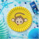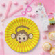 An illustration of a monkey face with blushing cheeks and his tongue sticking out. Looking cute and kawaii. The background is a cheerful yellow and orange pattern with sunrays bursting out around the monkey making him look super powerful.