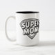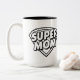 Graphic design featuring the words "SUPER MOM" in a bold, stylised font.