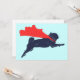 Super Pug invitations. A minimalist vector design featuring a super pug flying with a cute red cape. A great gift for fans of pugs, dogs, super hero canines and vector art.