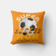 Pink Blue Super Soccer Mum Football Sporty Mother Pillow. The design has modern typography in orange and black colours with a soccer ball on orange background. Great gift for an active sporty mum who loves soccer.
