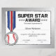 Super Star Baseball Certificate Award Sports Certi
