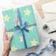 This fun wrapping paper features lime-yellow stars on a sea foam green background that reminds me of summer. Unisex and can be used for any occasion.