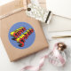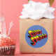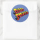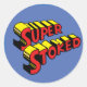 Design shows the words "Super Stoked" in red and yellow 3D writing against a blue background