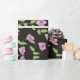 Pretty pink flowered gift wrap accented in green on black background, which can be switched to any colour of your choice. Wonderful design for any occasion.