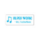 This motivating rubber stamp design features the positive feedback message "SUPER WORK!" and a custom teacher's, educator's or tutor's name. It also features a decorative musical note. It could be used by a school teacher or educator when marking assignments, to acknowledge that the student has done well.