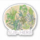 Decorate your water bottles, laptops, lockers, notebooks, computers, tablets, and other accessories where you want to let your personality shine! This sticker features a cute herb garden full of basil, sage ,thyme, mint, lemongrass, and cilantro with a text pun "Sup-herb" underneath it. Original art design by Tiffany Duffy.