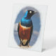 Superb starling (Lamprotornis chalybaeus) on rock and seen from front