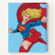 Check out this flying Supergirl character art illustration with her cape flying in the wind!