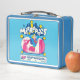 This is a standard metal lunchbox that appears to work just fine. We designed this box ourselves with an uploaded photo and custom text on the front and back. It looks absolutely beautiful except the front of the lunchbox is not centered like it shows in the photo. The print borders don't align with the inset flat part of the box where the preview photo online showed it perfectly centered in there. The back looks nice and centered though.