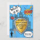 Superhero birthday party Invitation, blue, yellow, red with Comic flare