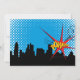 Celebrate baby boy's first birthday in superhero style! 1st birthday invite with Fresh and festive vibrant bright primary colours with halftone, cloud bursts and explosions, bam and pow! Powerful graphic Superhero for a fun boy's kids birthday party favour and decoration.