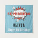 Superhero Comic Speech Bubble Boy Birthday Party Tapestry. Superhero birthday backdrop. Add your name and age. Fun super hero themed birthday party for boys.