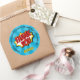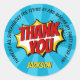Superhero Comic Style Boy Birthday Blue Thank You Classic Round Sticker