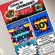 calling all superhero! celebrate your little superman birthday party with this superhero birthday invitation. This superhero party invitation features gotham city and metropolis city sky scrapper on a superhero comic book style background. perfect for your superman birthday party, batman birthday party and general superheroes themed birthday party.