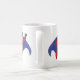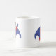 Illustration of a super hero man dressed in red and blue costume with cape flying through the air