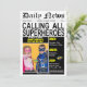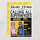 Personalize this unique newspaper style superhero birthday party invitation with a photo, name(s), age(s) and party details easily and quickly, simply press the customize it button to further re-arrange and format the style and placement of the text. Designed for a joint birthday. Use supplied "Pow" and "Kapow" images to embellish your card (they can be moved around). Great for ANY AGE!