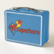 This is a standard metal lunchbox that appears to work just fine. We designed this box ourselves with an uploaded photo and custom text on the front and back. It looks absolutely beautiful except the front of the lunchbox is not centered like it shows in the photo. The print borders don't align with the inset flat part of the box where the preview photo online showed it perfectly centered in there. The back looks nice and centered though.