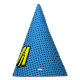 Blue and black polka dot party hat features BAM text. Easy to assemble. This dot pattern coordinates with Superhero Party Collection in our shop as well as most Superhero themed birthday parties. Also available in our shop without the BAM graphic.